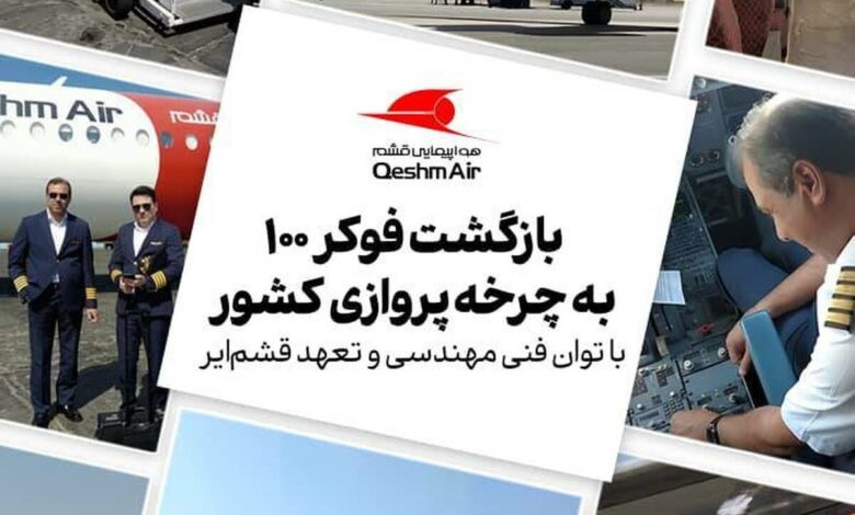بازگشت فوکر ۱۰۰ به چرخه پروازی کشور با توان فنی مهندسی و تعهد قشمایر