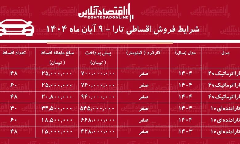 شرایط جدید فروش اقساطی جدید تارا / با ۵۴۵ میلیون تومان تارا بخرید! + جدول