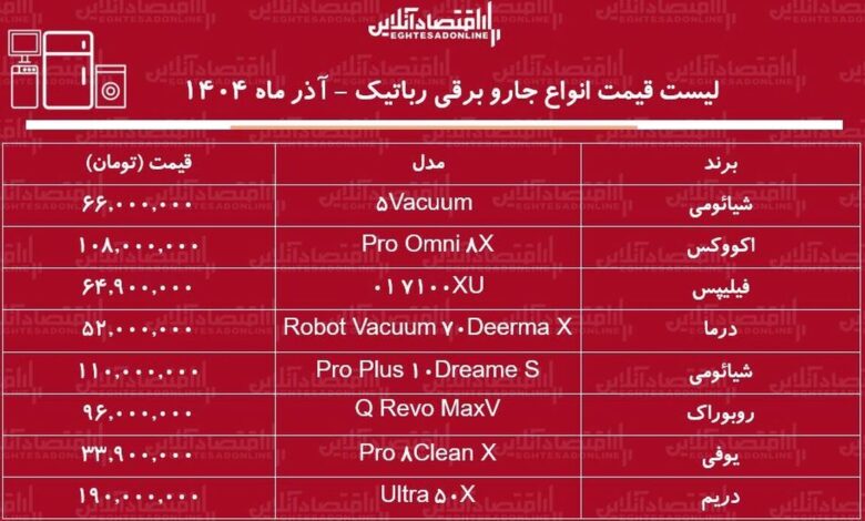 لیست قیمت انواع جاروبرقیهای رباتیک / جارو رباتیک خوب و ارزان چی بخریم؟ + جدول آذر ماه ۱۴۰۴