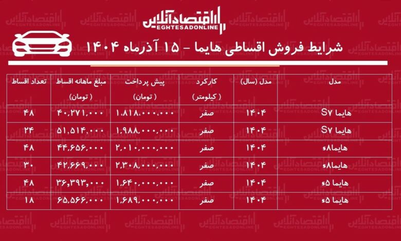 شرایط جدید فروش اقساطی هایما آذرماه ۱۴۰۴ / با اقساط ۴ ساله هایما بخرید! + جدول
