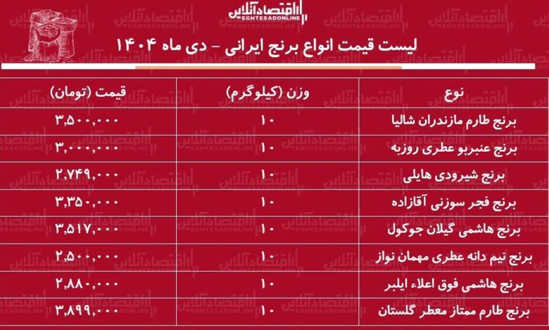 لیست قیمت انواع برنج ایرانی ۷ دی ۱۴۰۴ / برنج عنبربو، طارم، شیرودی و…کیلویی چند شد؟ + جدول