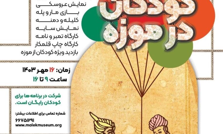 به گزارش خبرگزاری برنا، همزمان با روز ملی کودک، ویژه برنامه «با کودکان در موزه» در ۸ بخش متنوع در کتابخانه و موزه ملی ملک برگزار میشود.