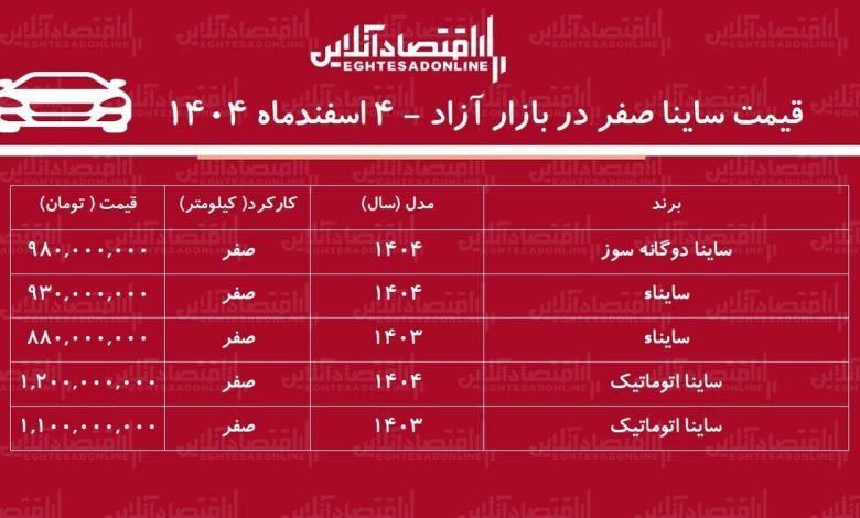 به گزارش سرویس خودرو اقتصادآنلاین، قیمت ساینا امروز با افت قابل توجه در بازار آزاد همراه شد و برخی نسخههای این خودروی پرفروش سایپا کاهشهای میلیونی کمسابقهای را ثبت کردند.