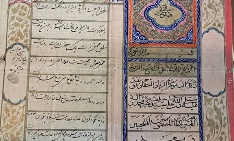 کارشناس طبقهبندی و فهرستنویسی اسناد آستان قدس رضوی بیان کرد: دیگر سند اهدایی مصطفایی، نکاحنامهای است که همچون اغلب قبالههای ازدواج با عبارت عربی «هوالمؤلف بین القلوب»، آغاز شده است.